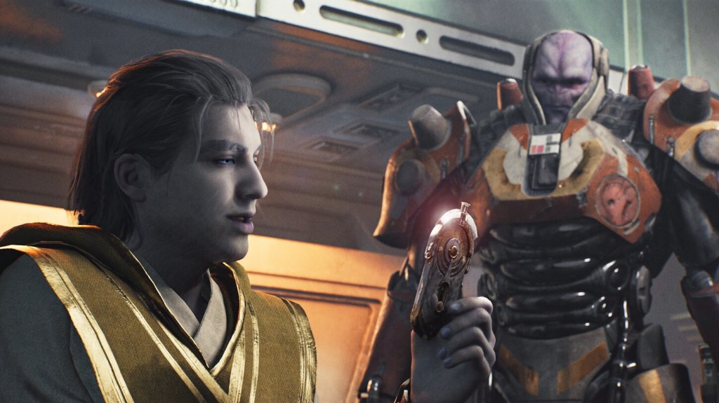 Still, the game thankfully fleshes out its other supporting characters where they were in dire need of a little more pronunciation – as before, Greez is still by-and-large the game’s comic relief, but he begins to grow beyond that as he gives voice to Cal’s desire to settle down and find a home away from the danger posed by the Empire, which is implied to be the main reason as to why he left the crew – even if the truth of the matter (as well as the story behind Greez’s missing arm) is hidden behind the Battle Scars novel. Merrin’s reasons for leaving feel equally vague, but she also gets a much bigger spotlight after having such little screen-time in the last game, which serves to make her a far more interesting character. Despite it taking place off-screen, Jedi: Survivor lends suitable time to explaining Merrin’s character development between the two games, that satisfyingly builds off what little characterisation she had in Fallen Order. Much like Cal, she feels far more mature and sure in herself, and it’s from that foundation that the writers guide the pair into a romance subplot, but it does feel somewhat rushed given that the pair are only given a short time to reconnect amongst every other component of the story, and I can only hope it’s expanded upon with more depth in future. While it may not reach the heights of greatness, the character writing in Jedi: Survivor is notable improvement over its predecessor, and even with the many faults I found with the plot, I was still very impressed with the thematic elements that the story derives from its characters and their motivations. Jedi: Survivor is deeply rooted in explorations of purpose, family, internal conflict and self-sacrifice, that make the story feel far richer in spite of its flaws, as well as differentiating its thematic elements from those of the previous game when it could have easily rehashed the same subtext in the framing of this story. Truthfully, the characters and themes offered by Jedi: Survivor‘s story give the game some welcome heart that manages to cut through the otherwise chaotic web of plot that the writers have stitched together; elevating the game beyond its biggest shortcomings.