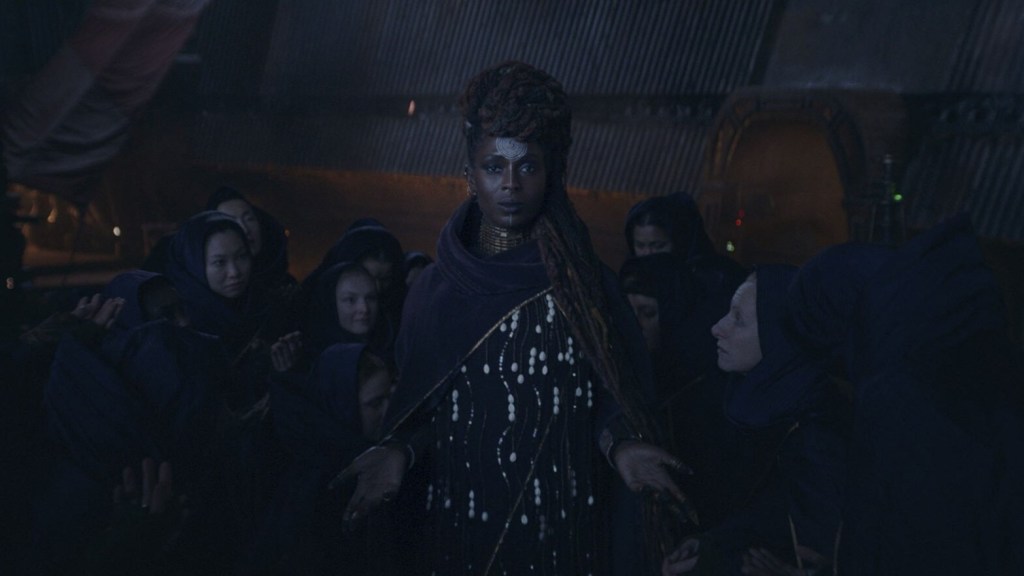 Set a hundred or so years prior to The Phantom Menace, during the era of the so-called High Republic (a thus-far fruitless multimedia project pushed by Lucasfilm to serve as a contemporary replacement for the vastly more popular Old Republic-focused stories of the past), The Acolyte opens with the arrival of a mysterious Force-wielding assassin upending the long-standing peace as she challenges and ultimately defeats the Jedi Master Indara (Carrie-Anne Moss) in a clearly vendetta-fuelled bout of combat. Though it initially seemed a waste to bump off a character backed by a talent such as Moss, the bold introduction to the series sets the plot running as a small circle of Jedi scramble to try and capture the assassin as she sets her sights on further targets – a decent starting point at any rate, but it doesn’t last all that long considering that anyone with two brain cells to rub together would quickly be able to figure out that their prime suspect, a former Jedi apprentice named Osha (Amandla Stenberg), is being wrongly accused of the crime committed by her long-lost twin sister Mae (also played by Stenberg), and even then the show seems to think that this is some sort of shocking revelation when it decides to spell it out clear as day for the audience. Enduring the ceaseless drivel of the show’s painfully cringeworthy dialogue across the first two episodes enlightens you to the crux of the story as it becomes clear that Mae is intent on killing the four Jedi who were present when her family died years prior; the first account of which is delivered through a plodding flashback episode about the woes of – get this – a coven of lesbian Force-wielding witches, complete with a heavily embarrassing interpretative dance number that probably should have been cut anyway given that it takes an entire second flashback episode to fully establish the backstory for The Acolyte‘s main plotline and capitalise on the relentless ham-fisted allusions to past events sprinkled throughout the script.